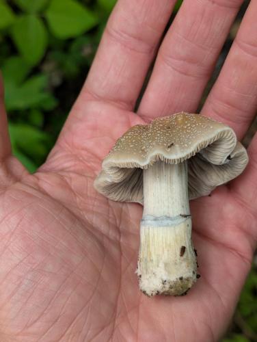One of my patches labeled Cyanescens decided to fruit. It makes me wonder if it was labeled correctly and not Ovoids instead. We had a couple 80° days and all of the sudden a 40° rain storm a few week... View MoreOne of my patches labeled Cyanescens decided to fruit. It makes me wonder if it was labeled correctly and not Ovoids instead. We had a couple 80° days and all of the sudden a 40° rain storm a few weeks ago so I'm feeling hopeful. This particular patch has also suffered multiple animal attacks and a majority of it has already been spread on the forest floor. Even recently something dug a hole the size of a fist in the side of it (possibly squirrel or chipmunk). In one of the photos you can see I made a little Hut to protect it until fruiting is over. I suppose I'll have a better idea of which species it is once I test them. I should have more photos later. I feel confident on my labeling skills so if anyone has any input I could use the enlightenment.Hopefully I'm not just being too hopeful.