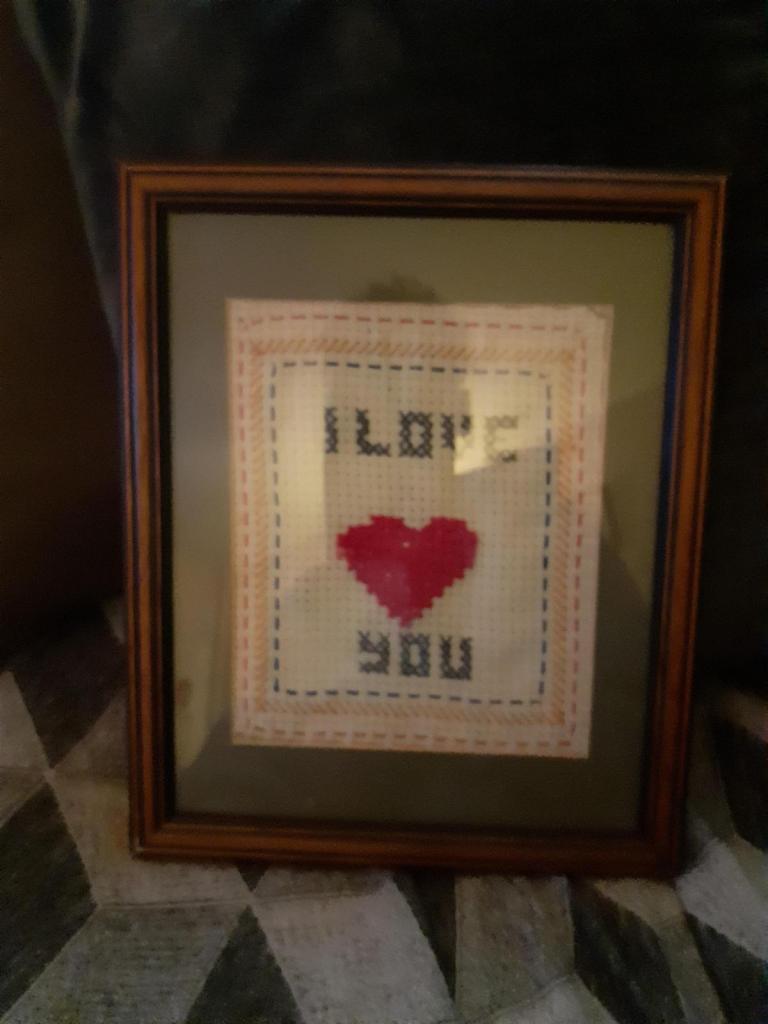 Made this in 1995, mum gave it back to me today, i made it for her, now its going in my girls room, love is everything, i tell my daughter i love her more thsn anything at least 10 times a day, kids n... View MoreMade this in 1995, mum gave it back to me today, i made it for her, now its going in my girls room, love is everything, i tell my daughter i love her more thsn anything at least 10 times a day, kids need to have that, mind you so do us adults, wish i coukd find someone who loves me for me but aint gonna happen. But thats cool i have my daughter she attracts all the love i have to give.